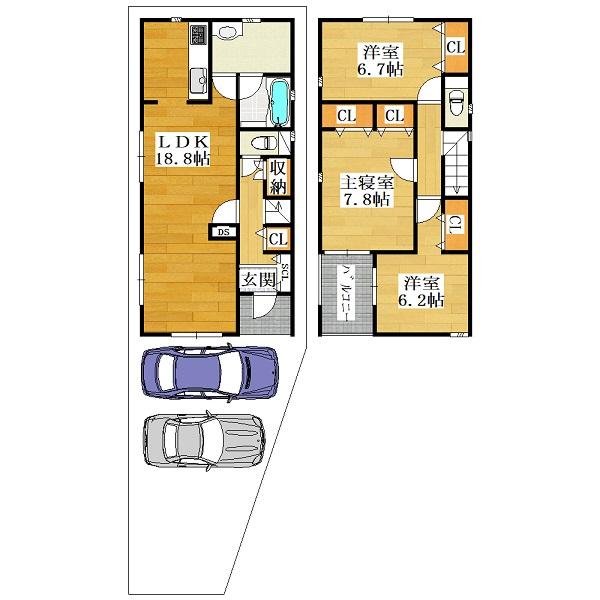 | 土地面積 | 116.47m2(35.23坪) | 建物面積 | 100.03m2(30.25坪) |