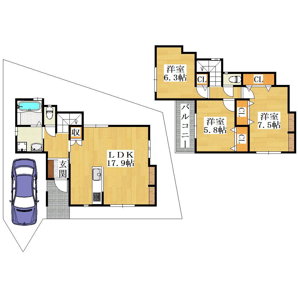土地面積 | 105.89m2(32.03坪) | 建物面積 | 89.4m2(27.04坪) |
