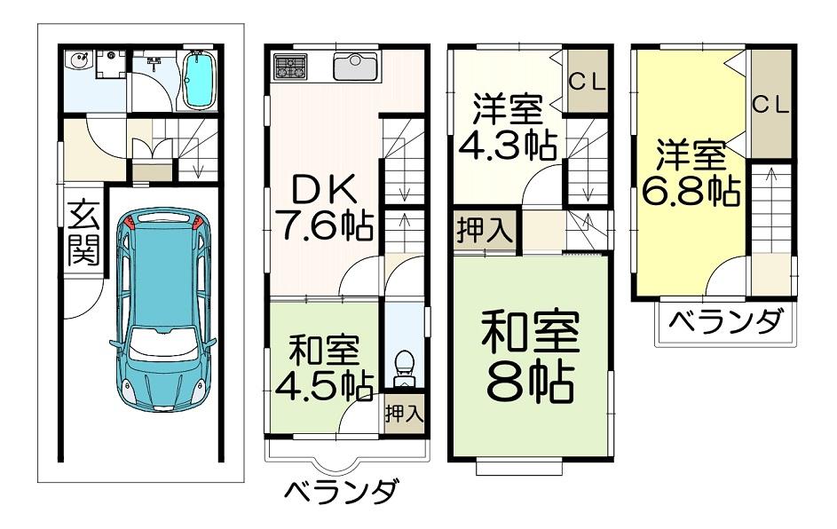 | 土地面積 | 33.06m2(10坪) | 建物面積 | 90.24m2(27.29坪) |