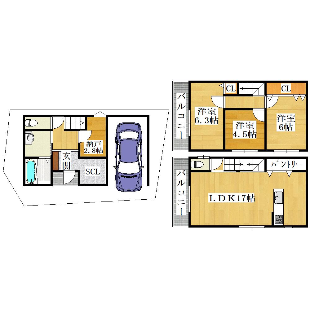 | 土地面積 | 57.71m2(17.45坪) | 建物面積 | 103.94m2(31.44坪) |